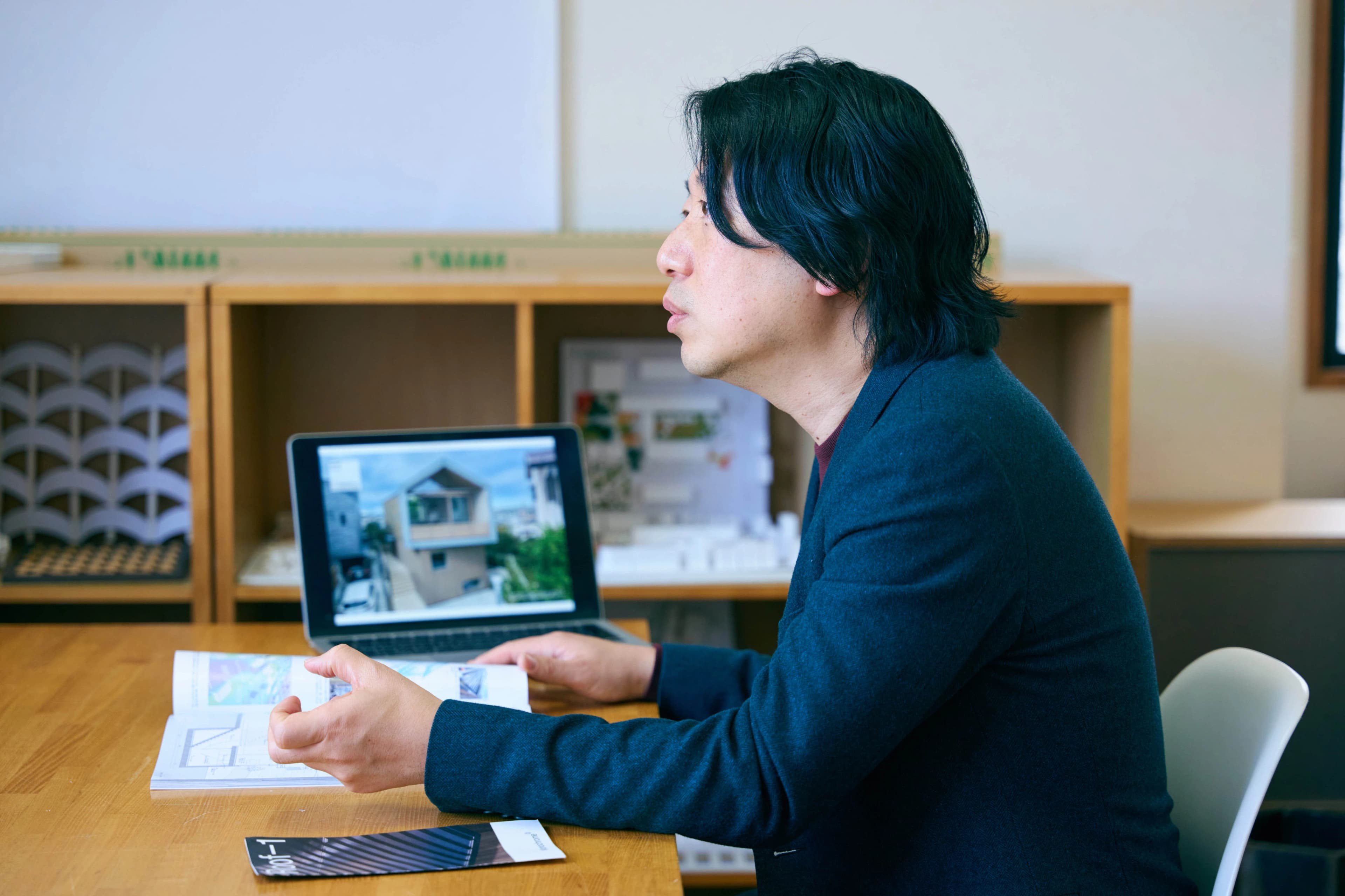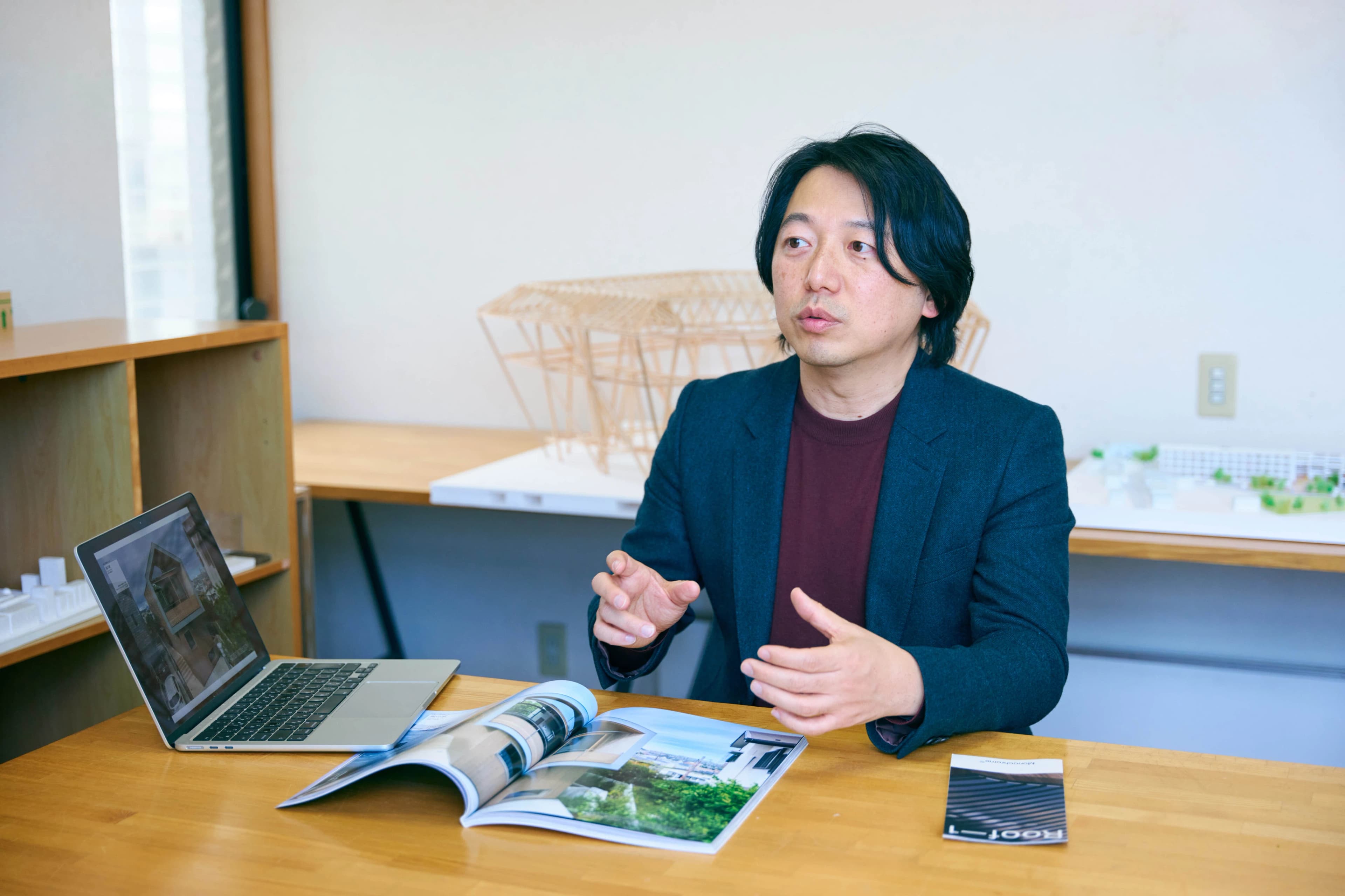 私たちが目指しているのは、そうした住まい手のライフスタイルや価値観を感じ取りながら、環境とバランスの取れた建築の設計です。そして、これからの時代の建築は、地域の特性や景観との調和がより重要になってくるとも考えています。 20世紀の大量生産・大量消費の時代には、同じような建物が次々と作られました。住宅供給の面では大きなメリットがあったと思いますし、人口が増え、経済が発展する中では、それが合理的な選択肢だったのでしょう。しかし、現在は人口が安定、あるいは減少する局面に入りつつあります。にもかかわらず、同じような手法で建築を続けることが本当に良いのか、疑問を感じています。 画一的な建築が広がることで、地域の文脈や特性が薄れ、共同体としての意識や地域への愛着が失われていくことがある。だからこそ、景観は建築家が重視すべき重要な要素の一つだと思うんです。その町や自然環境に適した形態や景観をつくることで、地域の人々が環境とつながり、共同体としての結びつきを強めることができるのではないでしょうか。