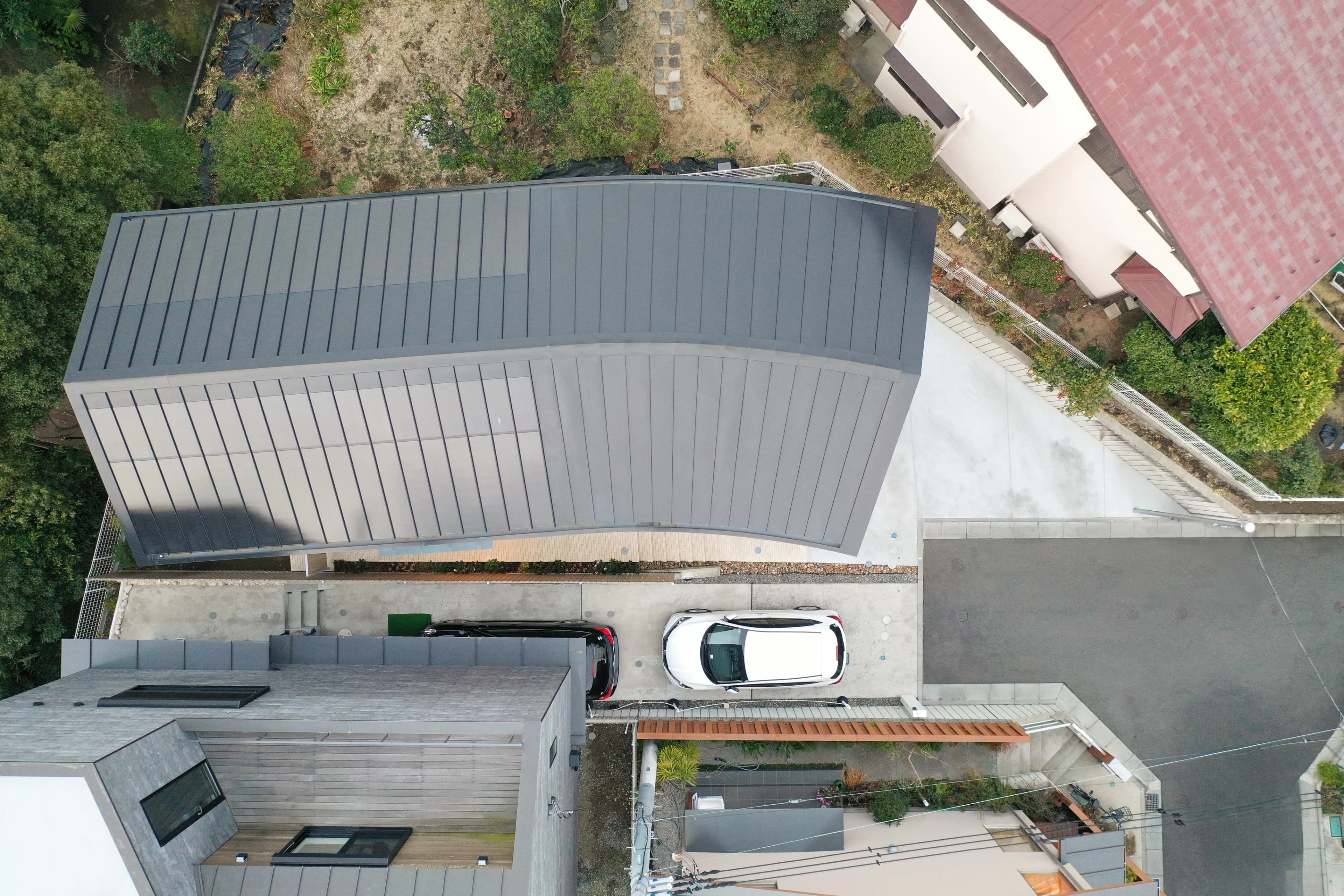 藤沢の海からほど近い住宅街。細い路地が入り組む町並みを横目に坂を登りきった突き当りに、「風の家」はある。海から陸へと吹く風が通り抜ける空間づくりをテーマとしたこの住宅には、屋根一体型太陽光パネル”Roof-1”が採用されている。北側から俯瞰して見ると、建物が海の方向に緩やかなカーブを描き、風を迎えいれる形状になっていることが分かる。 2024年10に竣工したこの住宅を設計したのは、「自然との共生」をテーマとした建築デザインを数多く手掛けてきた建築家ユニットSUEP.(末光弘和+末光陽子)だ。「風の家」が目指したもの、そしてこれからの環境建築のあり方について、SUEP. 末光弘和さんに伺った。