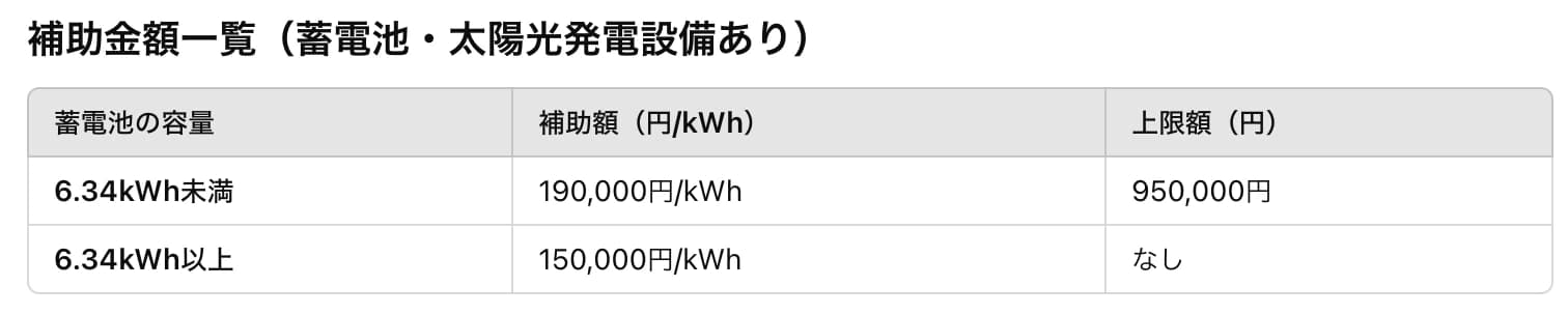 さらに蓄電池の補助金を併用すると、例えば10kWh容量なら蓄電池の補助金額は約120万円になり、総額で新築なら209万円(120万円+89万円)の補助金がもらえる可能性があります。