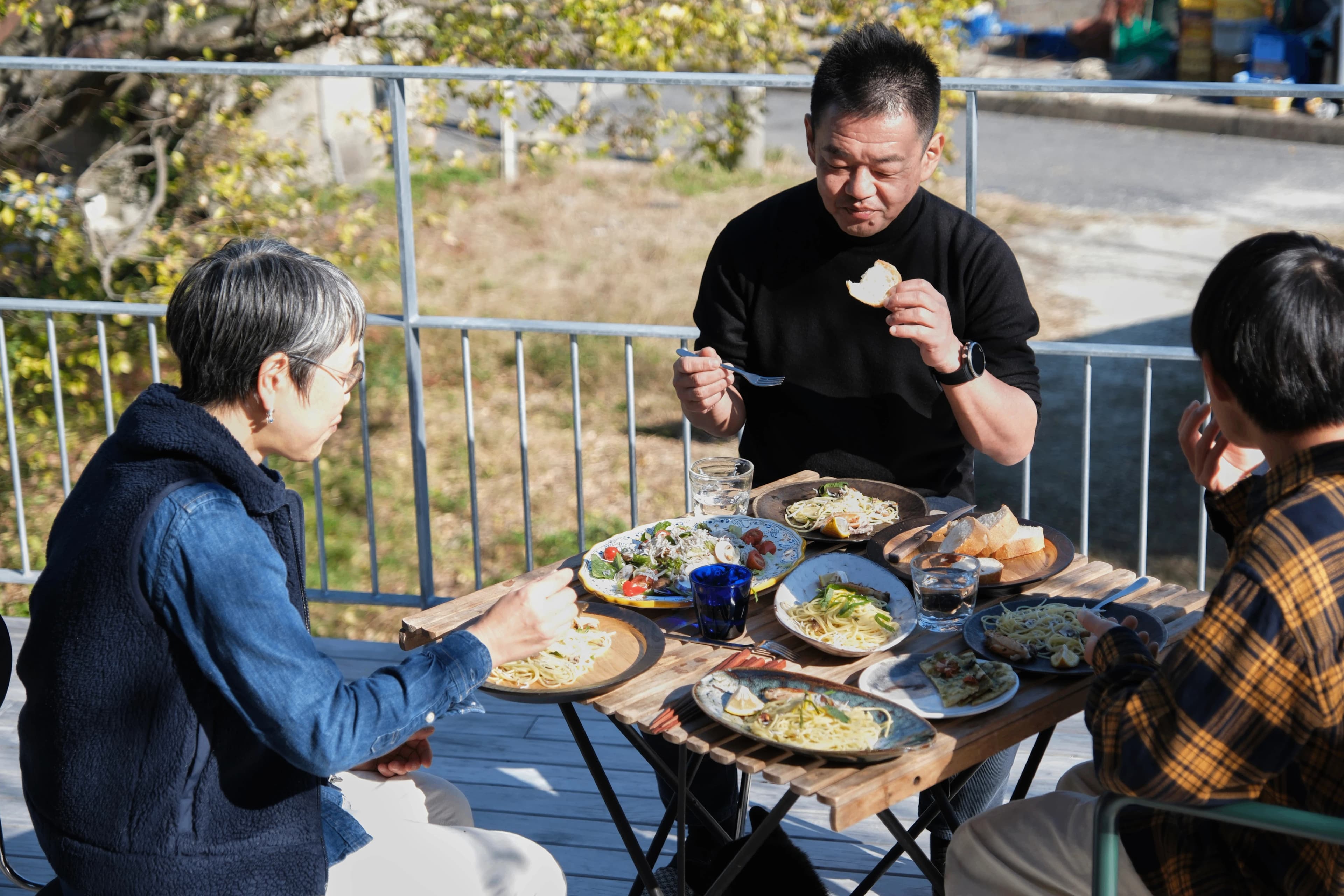 目の前に広がる瀬戸内海の眺望をお裾分けしていただく。 「ここで一緒に海を見ながら、カセットコンロでラーメンつくってくれたの、お母さん楽しかったなぁ。」と息子さんに語りかける文子さん。 家族と過ごす何気ない日常こそが思い出になるその瞬間が想像でき、こちらの心まで温まる。